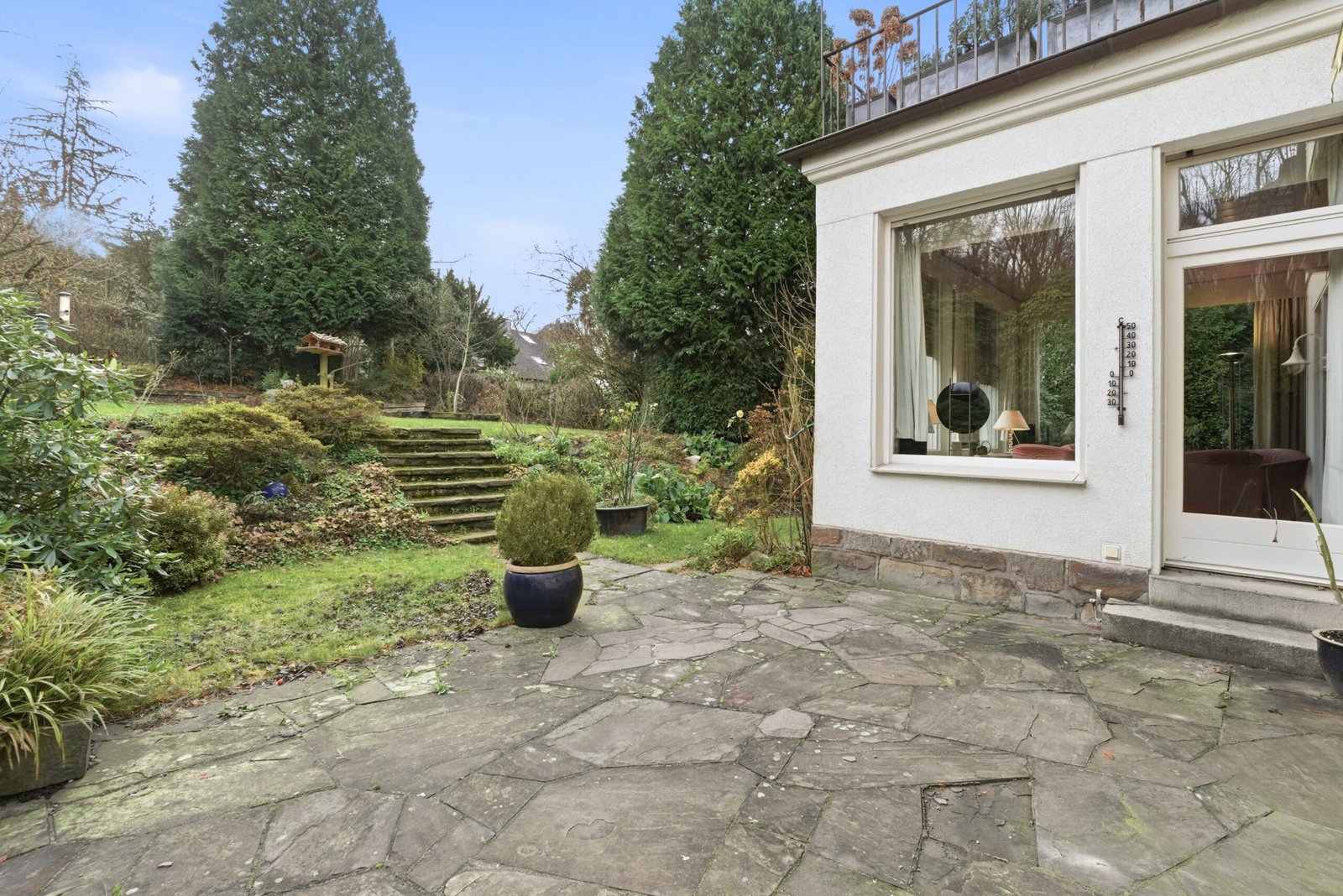 Die Immobilie liegt in einer ruhigen und familienfreundlichen Nachbarschaft in Wuppertal, umgeben von viel Grün und gewachsenem Baumbestand. Die Rheinmetropole Düsseldorf ist in ca. 30 Minuten Fahrzeit erreichbar und macht die Lage auch für Berufspendler besonders attraktiv.